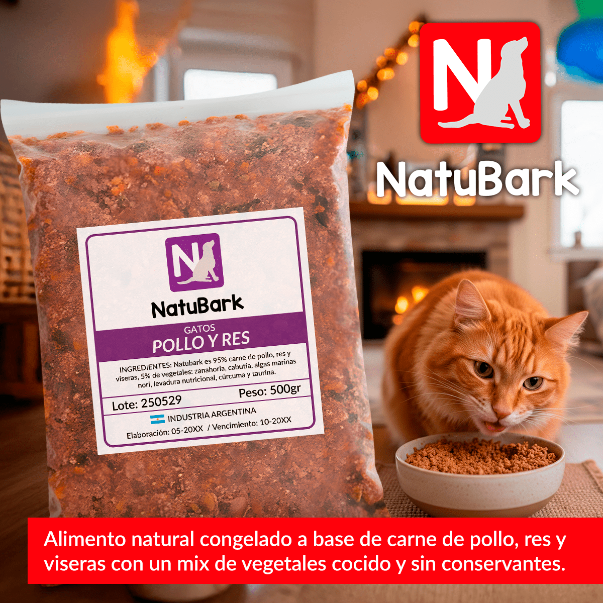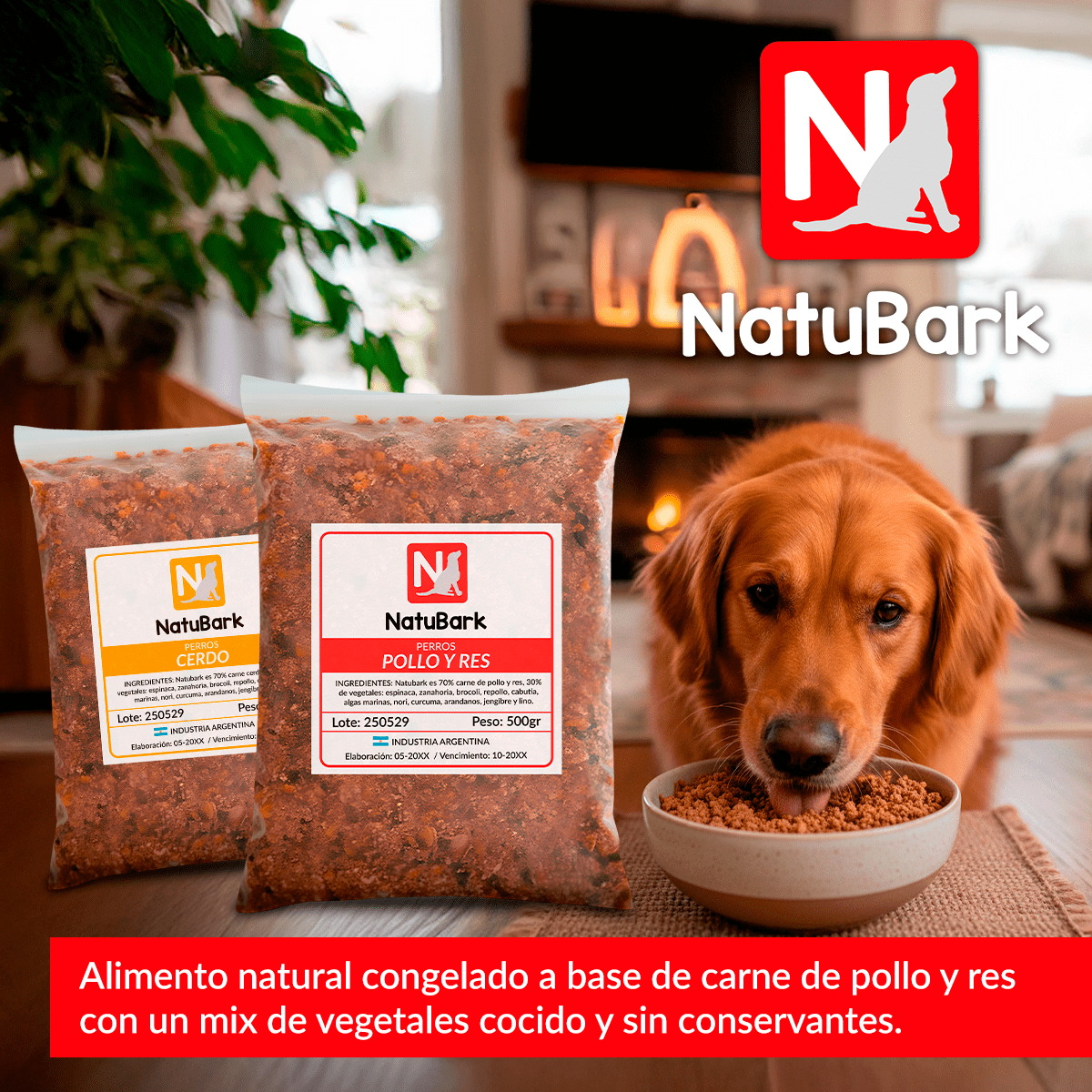 Almacena Natubark según las instrucciones (refrigerado/congelado) y sirve la ración recomendada. ¡Preparate para ver a tu perro relamerse!